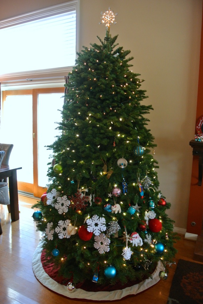 We let the kids decorate the tree and quickly realized that our height was somewhat limiting in terms of ornament placement.